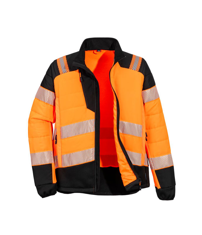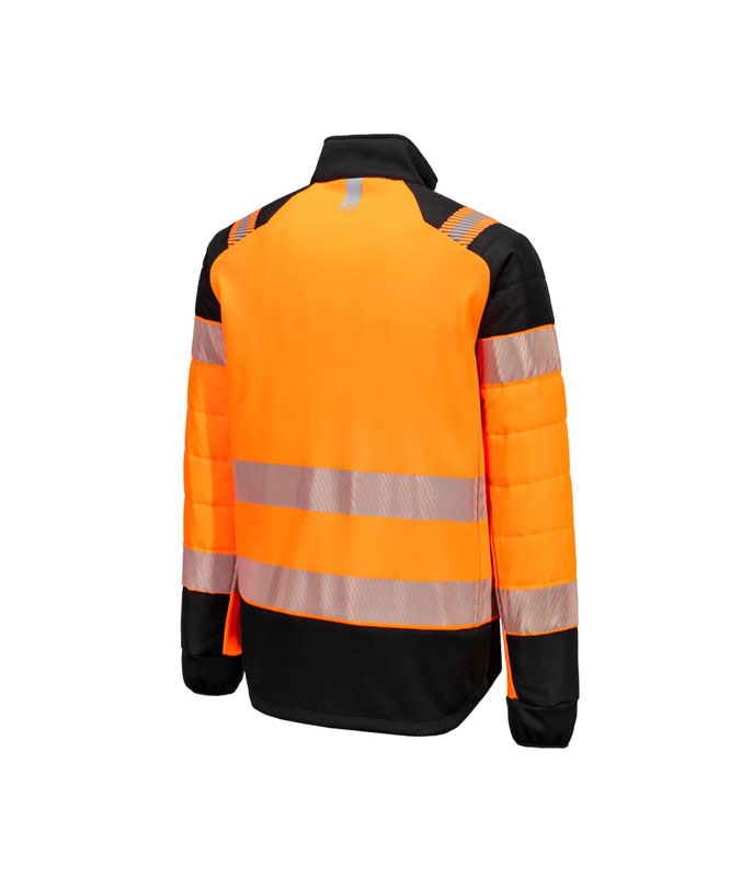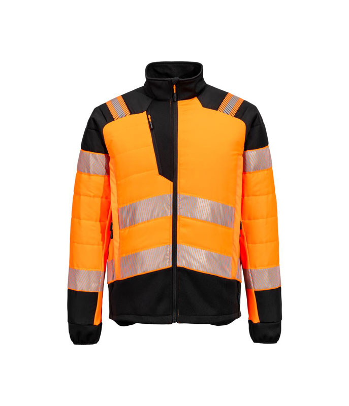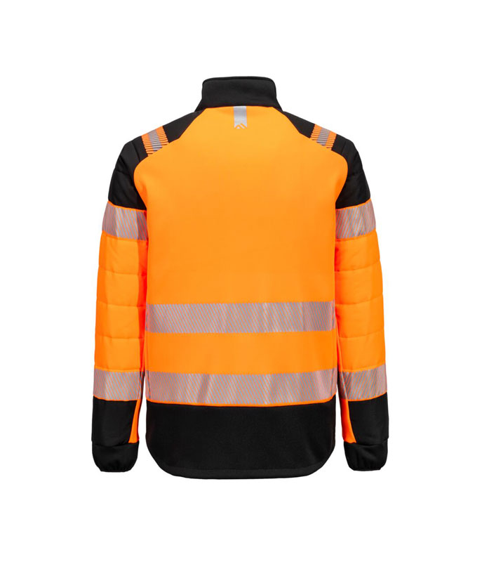 Jachetă Hi-Vis Hybrid Baffle Portocaliu / Negru. PW3 Hi-Vis Hybrid Baffle este o jachetă de ploaie de înaltă vizibilitate, proiectată pentru confort, protecție și mobilitate maximă. Fabricată din ripstop durabil și impermeabil, include panouri elastice pentru libertate de mișcare, izolație termică strategically poziționată și o croială ergonomică pentru protecție optimă în orice condiții meteo.