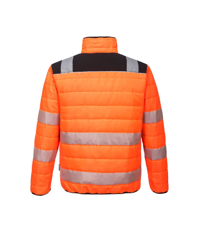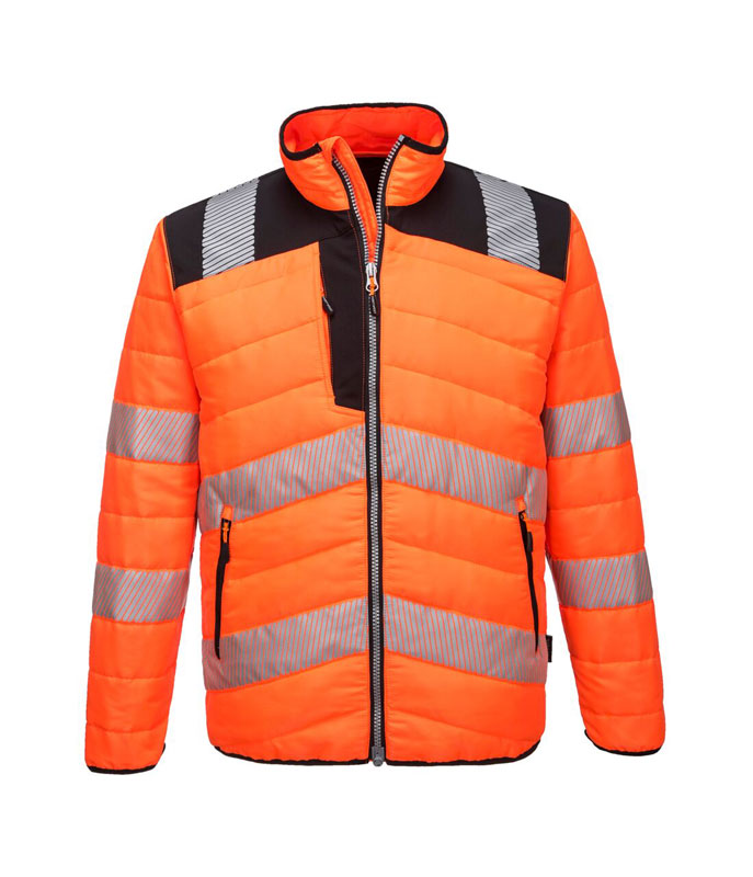 Jachetă Hi-Vis PW3 Baffle Portocaliu / Negru. PW3 Hi-Vis Baffle este o jachetă de înaltă vizibilitate realizată din materiale de calitate, echipată cu bandă reflectorizantă HiVisTex Pro segmentată pentru libertate sporită de mișcare. Exteriorul ripstop, combinat cu izolația ușoară Insulatex, oferă protecție excelentă împotriva vântului și a ploii. Caracteristicile includ fermoar Ezee Zip și buzunare cu fermoar pentru depozitare sigură.