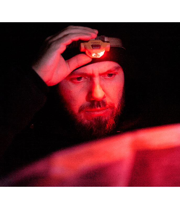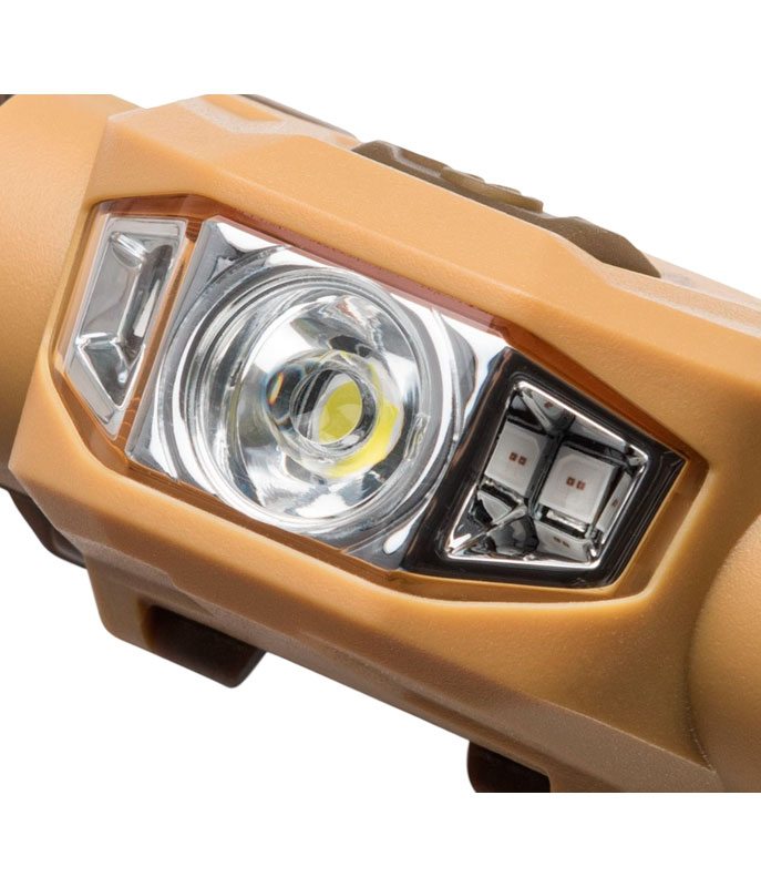 Lanternă multifuncțională, cu trei culori de lumină (alb, verde, roșu), reglaj ADS și rezistență la apă și cădere – ideală pentru trekking, bushcraft și uz zilnic.