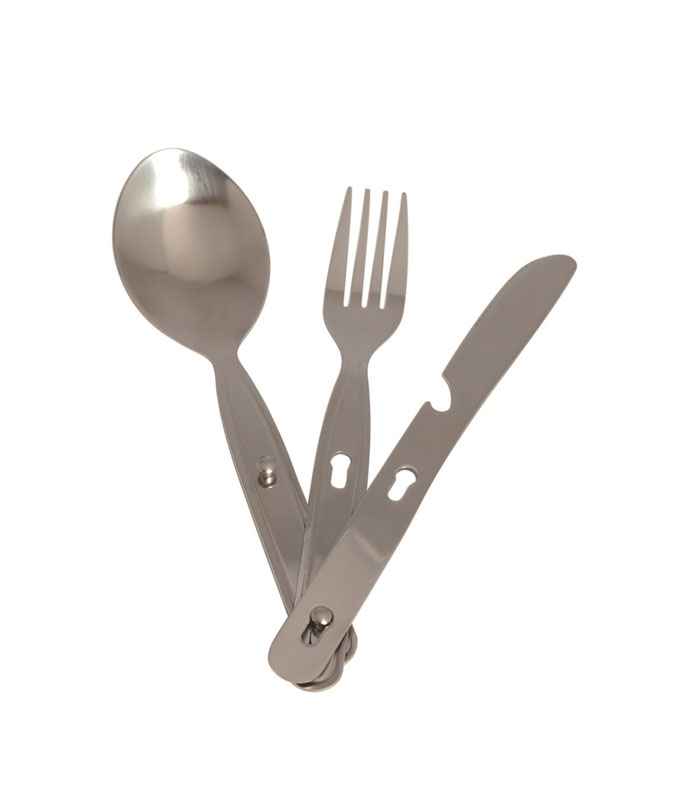 Set de 3 tacâmuri din oțel inoxidabil | Camping Set practic și compact de tacâmuri din oțel inoxidabil, ideal pentru camping, drumeții sau picnicuri.