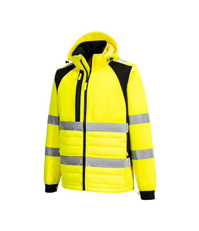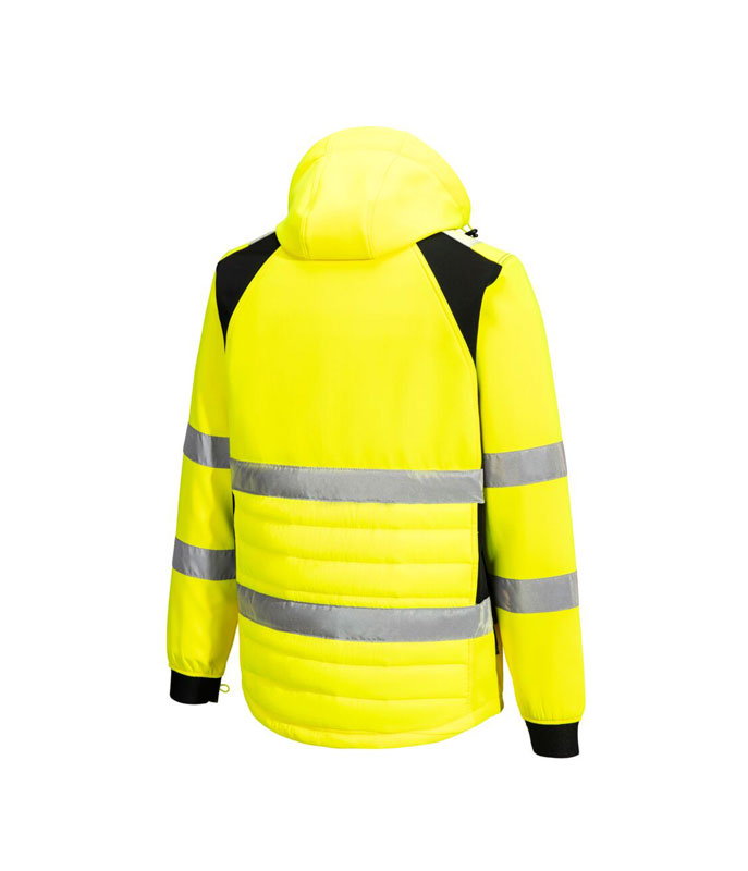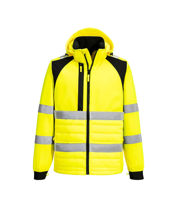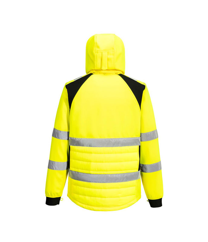 Eco Hybrid Hi-Vis Куртка Жёлтый / Чёрный. WX2 Eco Hi-Vis Hybrid Baffle — это высоковидимая softshell-куртка современного дизайна с эластичными контрастными панелями. Изготовлена из переработанных материалов GRS, защищает от ветра и дождя, обеспечивает тепло и высокую видимость благодаря ретро-отражающей ленте. Идеальна для промышленности, логистики, обслуживания объектов и наружных работ.