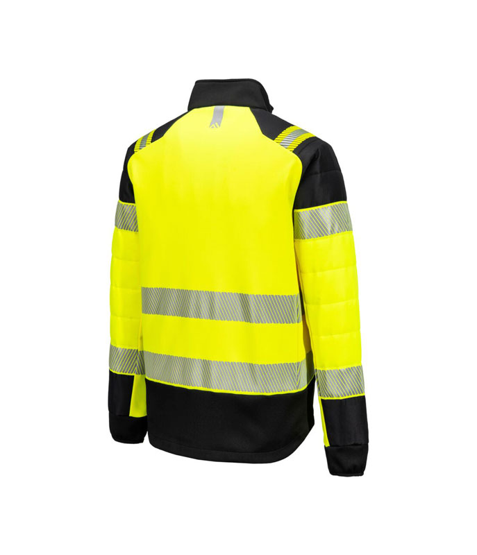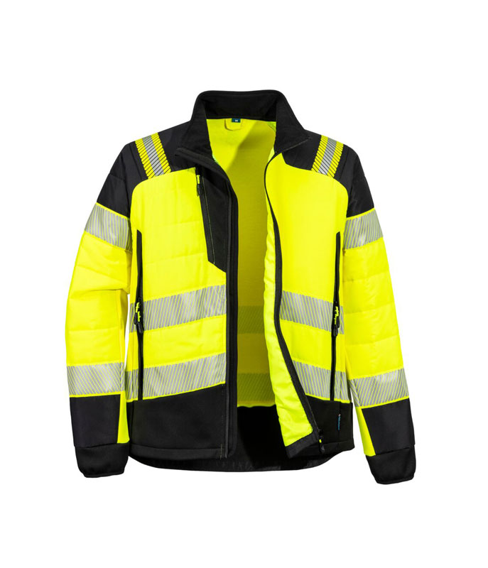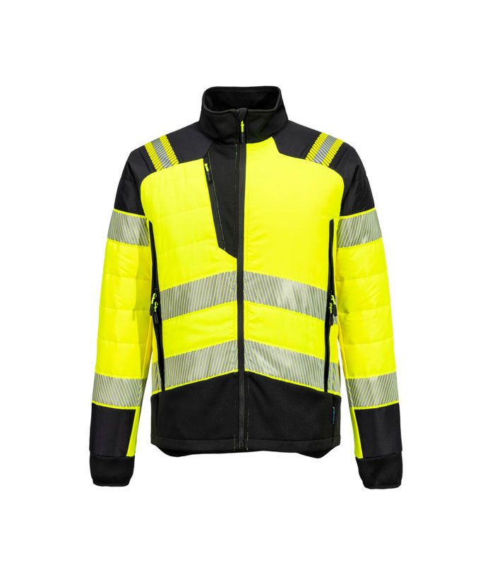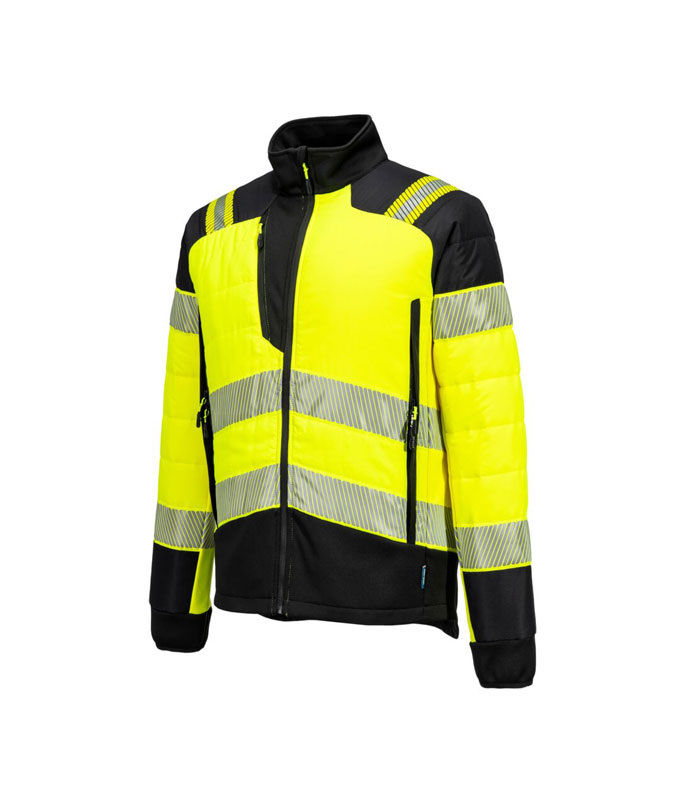Hi-Vis Hybrid Baffle Куртка Жёлтый / Чёрный. PW3 Hi-Vis Hybrid Baffle — это высоковидимая защитная куртка, созданная для максимального комфорта, защиты и мобильности. Изготовлена из прочной водоотталкивающей ткани ripstop, оснащена эластичными панелями для лучшей свободы движений и утеплёнными секциями для сохранения тепла в прохладных условиях.