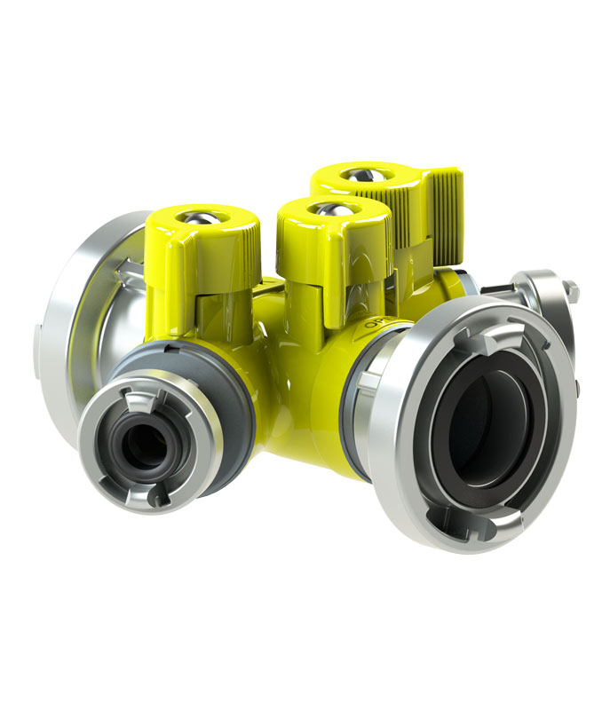 Модель оснащена 1 входом с соединением Storz C/52 из алюминиевого сплава, 1 выходом с соединением Storz C/52 из алюминиевого сплава и 2 выходами с соединением Storz D/25 из алюминиевого сплава. Такое исполнение позволяет эффективно распределять поток воды в нескольких направлениях во время тушения. 🔥🌿