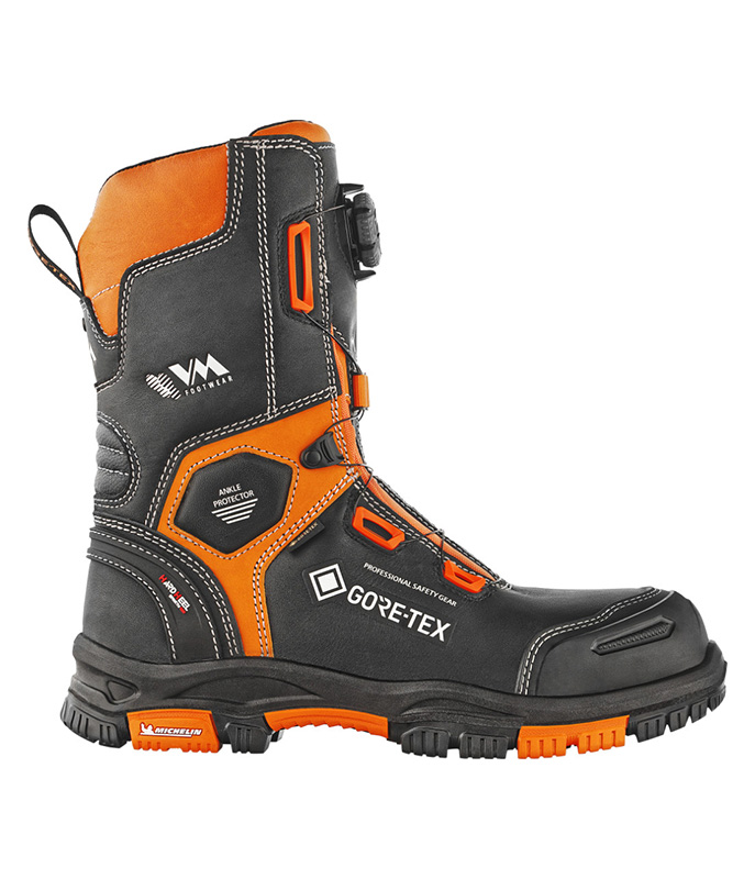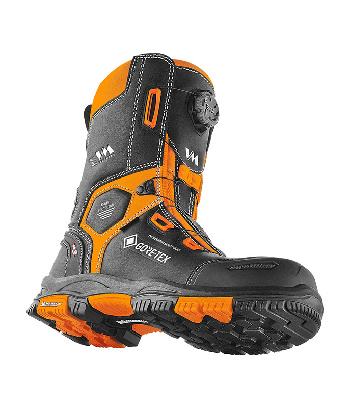 Тип — S7L FO FO HRO AN AN SR — с композитным носком и кевларовой подошвой, гидрофобная, мембрана GORE-TEX®, система BOA® Fit System, техническая подошва MICHELIN®: